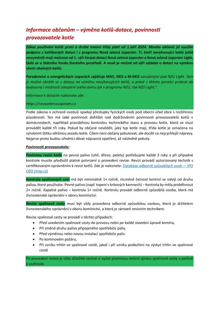 Povinnosti provozovatele kotle.